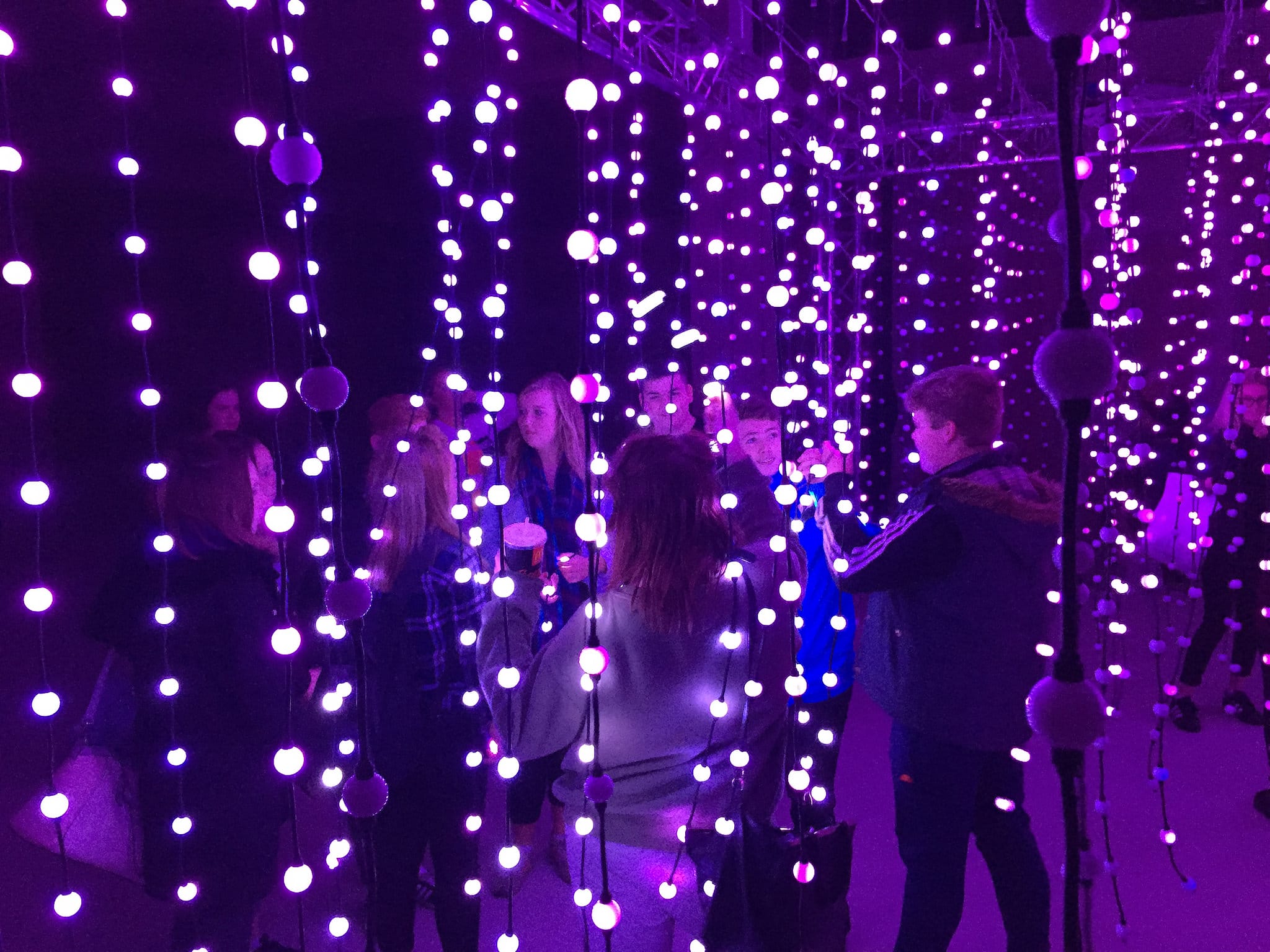 The piece also builds on previous projects, such as Aeolian light (2014) and Submergence (2013), that use large walkthrough arrays of responsive lights to physically surround the visitor, placing them within a massive hybrid reality space. The result is a beguiling, disorienting and immersive experience that alters our perceptions of space, place and each other.