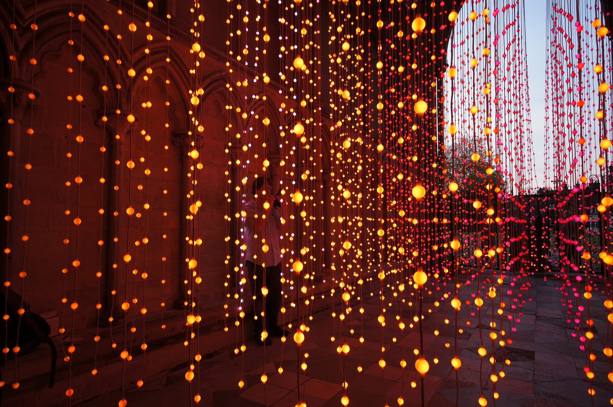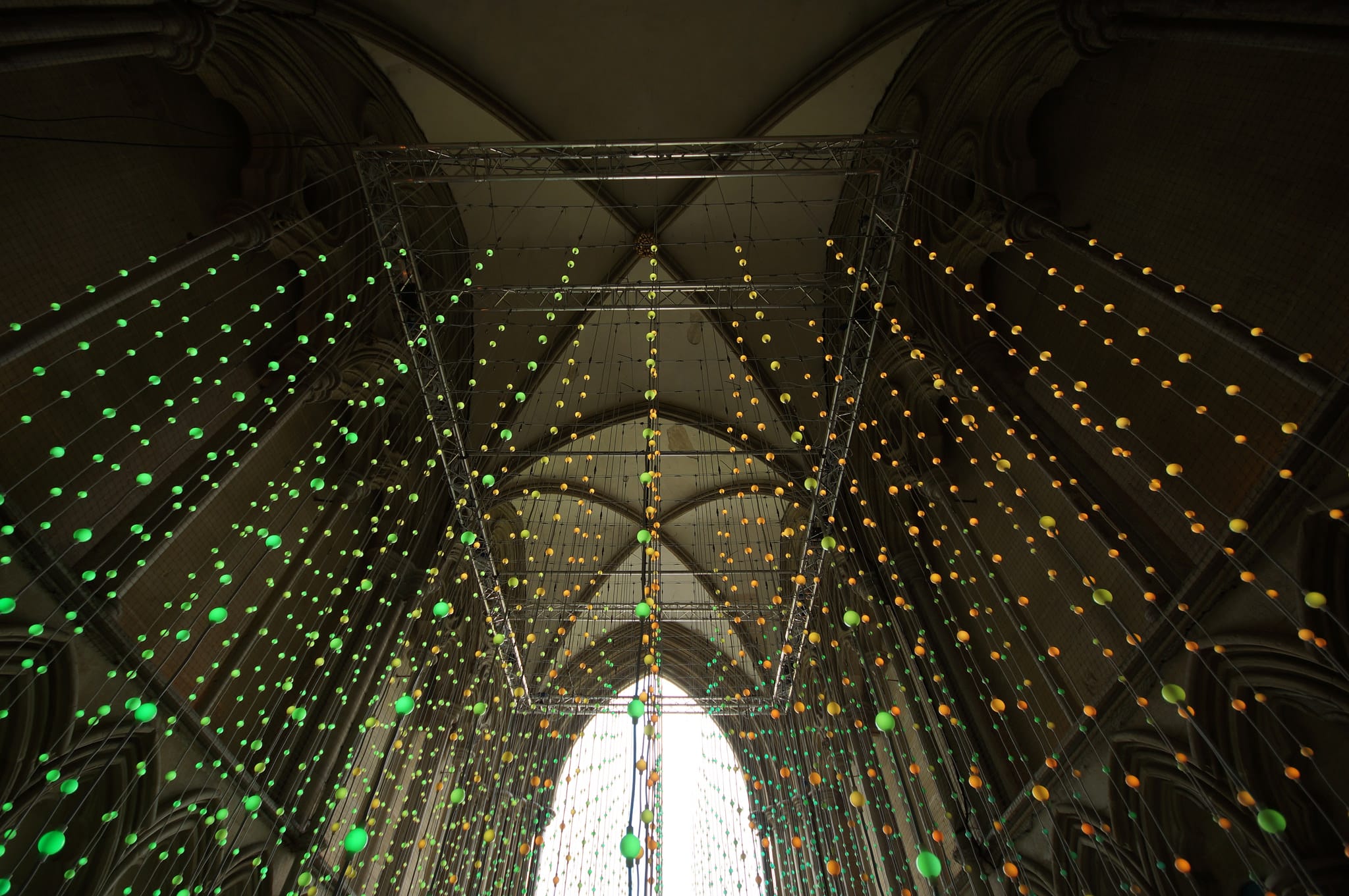 Enlightenment was on show in the North Porch at Salisbury Cathedral from 15 June to 6 September 2015 along with another Squidsoup piece, Power of Words. Enlightenment was then shown in a highly contrasting setting as part of Frequency Festival in Lincoln (23 October – 1 November 2015).